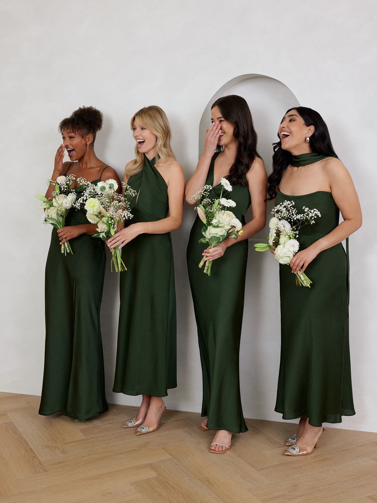 - Bias-cut skirt
