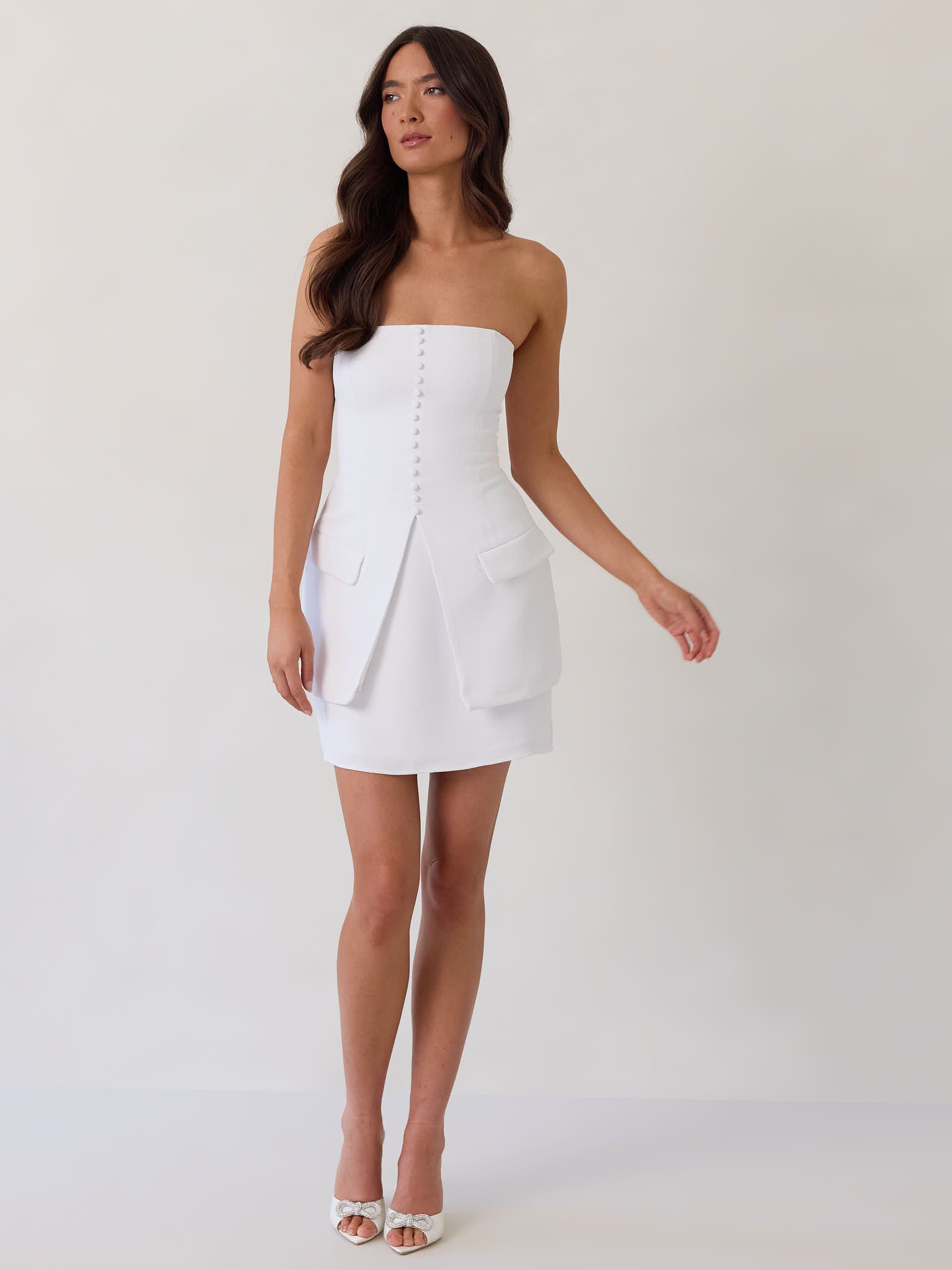 - Strapless neckline with side seam zipper